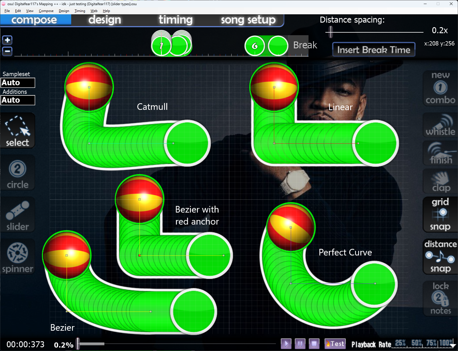 The following is an example of the slider curve types available on modern osu!