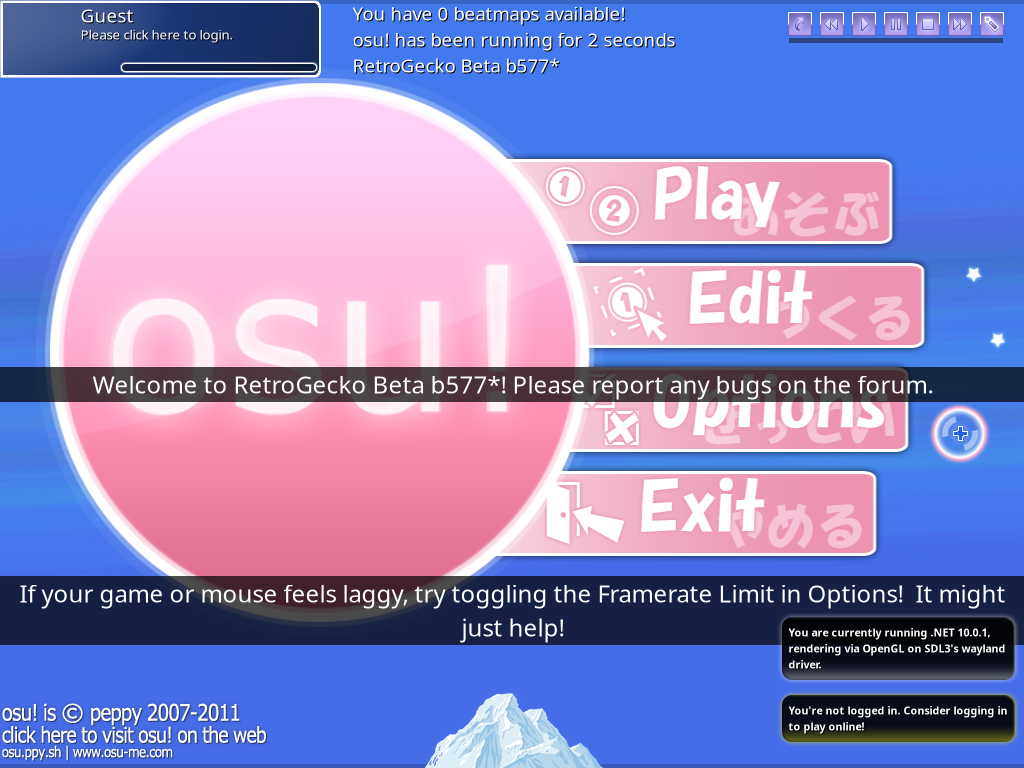 This is an updated version of osu! b1816 to bring the game to modern standards, even past what the latest osu!stable targets.