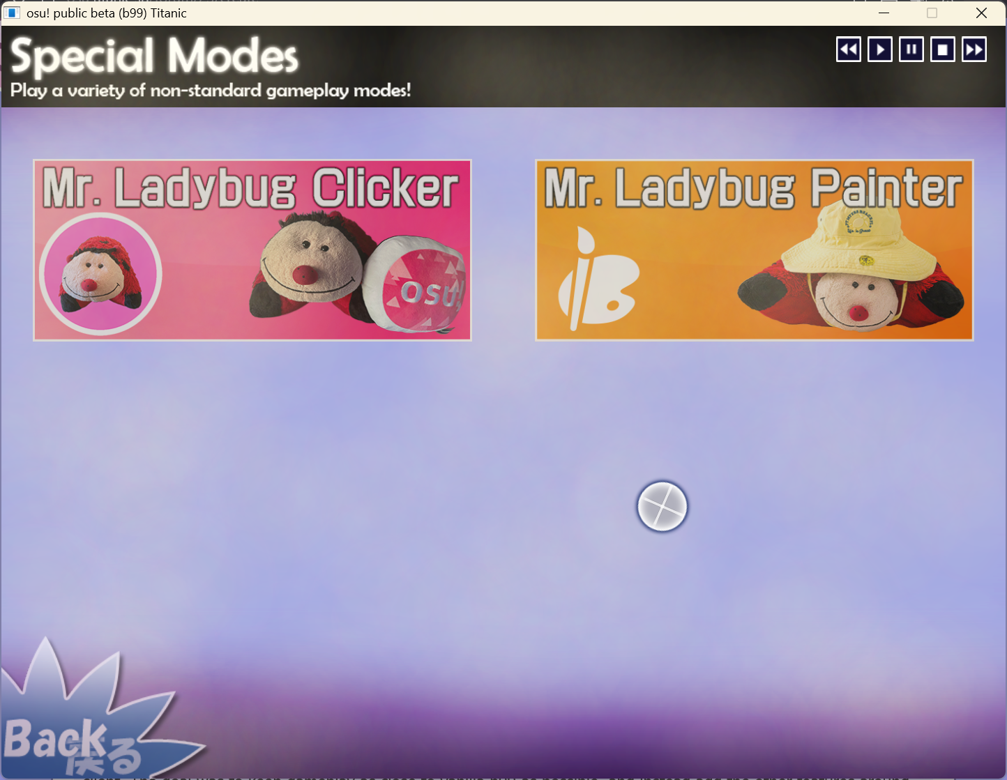 b99 is a VERY old and basic client. Remember that we are modding a version of osu! that had only been in development for 4 months when it released. Our mod attempts to add many quality of life features and bug fixes, but the client is so basic that there are features from later clients missing, or minor bugs, please be gentle when reporting bugs!