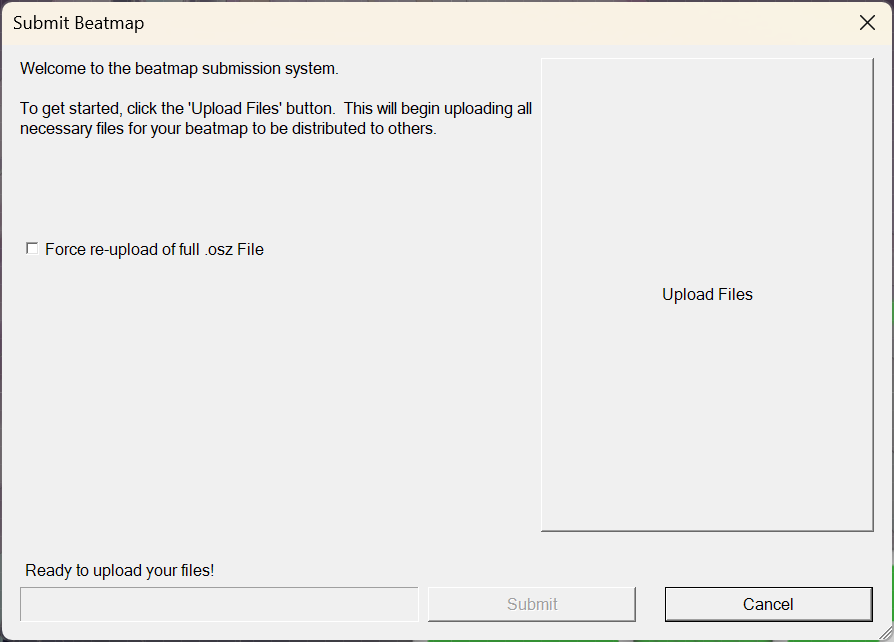 Believe it or not, b99 didn't even have BSS. Originally you exported your map as osz, and then uploaded it to a custom file server on the osu! website, then posted the link to the forum! That's what those peppy.chigau links were all about. Not anymore! This b99 client supports full BSS!
