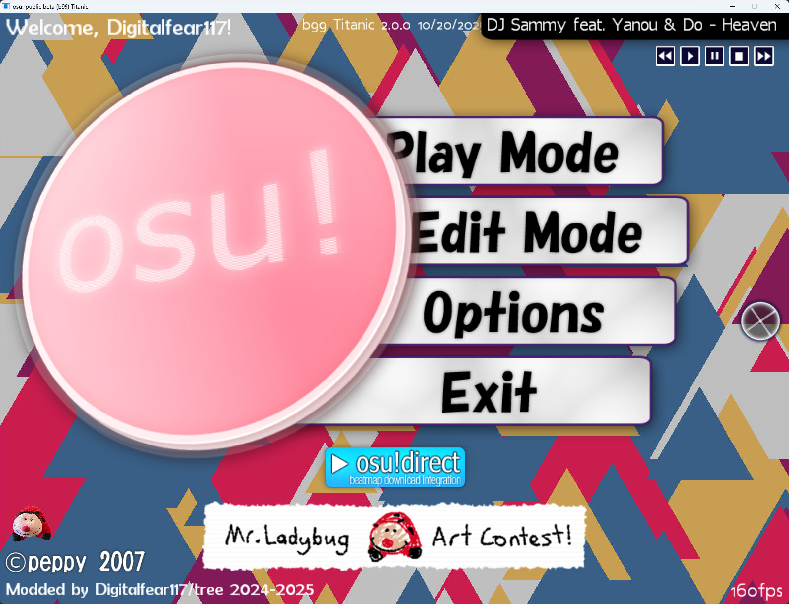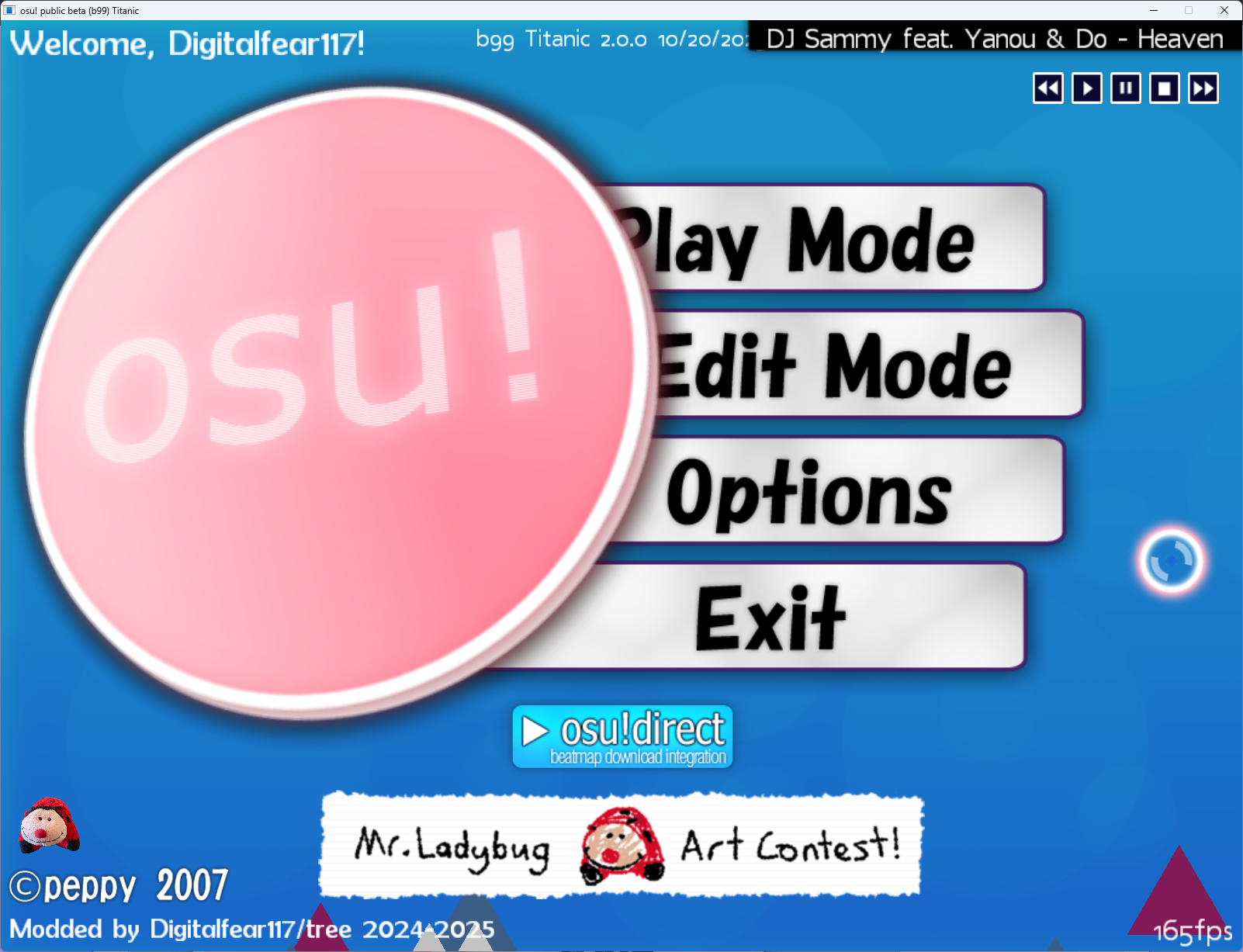 Today 10/13/2025 marks 18 years since b99 released! This for a long time has been the oldest preserved version of osu! as peppy posted this version to the forums in 2013. Me, tree, and other community members have been working hard in the background to bring an majorly overhauled version of this client to all those on Titanic!