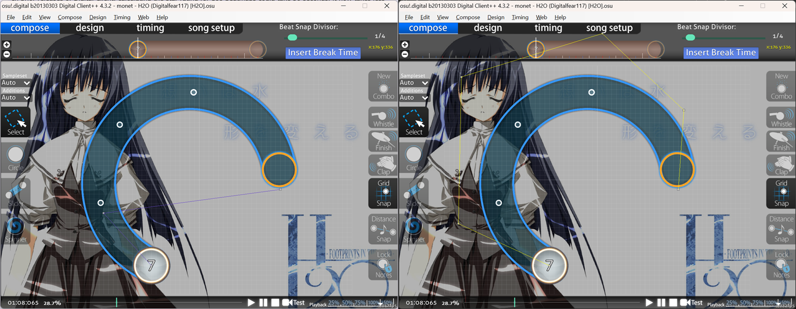 I accidentally broke a very important part of sliders well before the first release of Digital Client, I was storing SliderMultiplier as a float instead of a double. I have literally no idea why this was ever changed by me, but it caused issues in one very specific case. Taiko Converts on certain maps would no longer generate notes correctly compared to all other clients because of this. Thanks to Khangaroo for solving this issue and for gsxr4o0 for reporting it