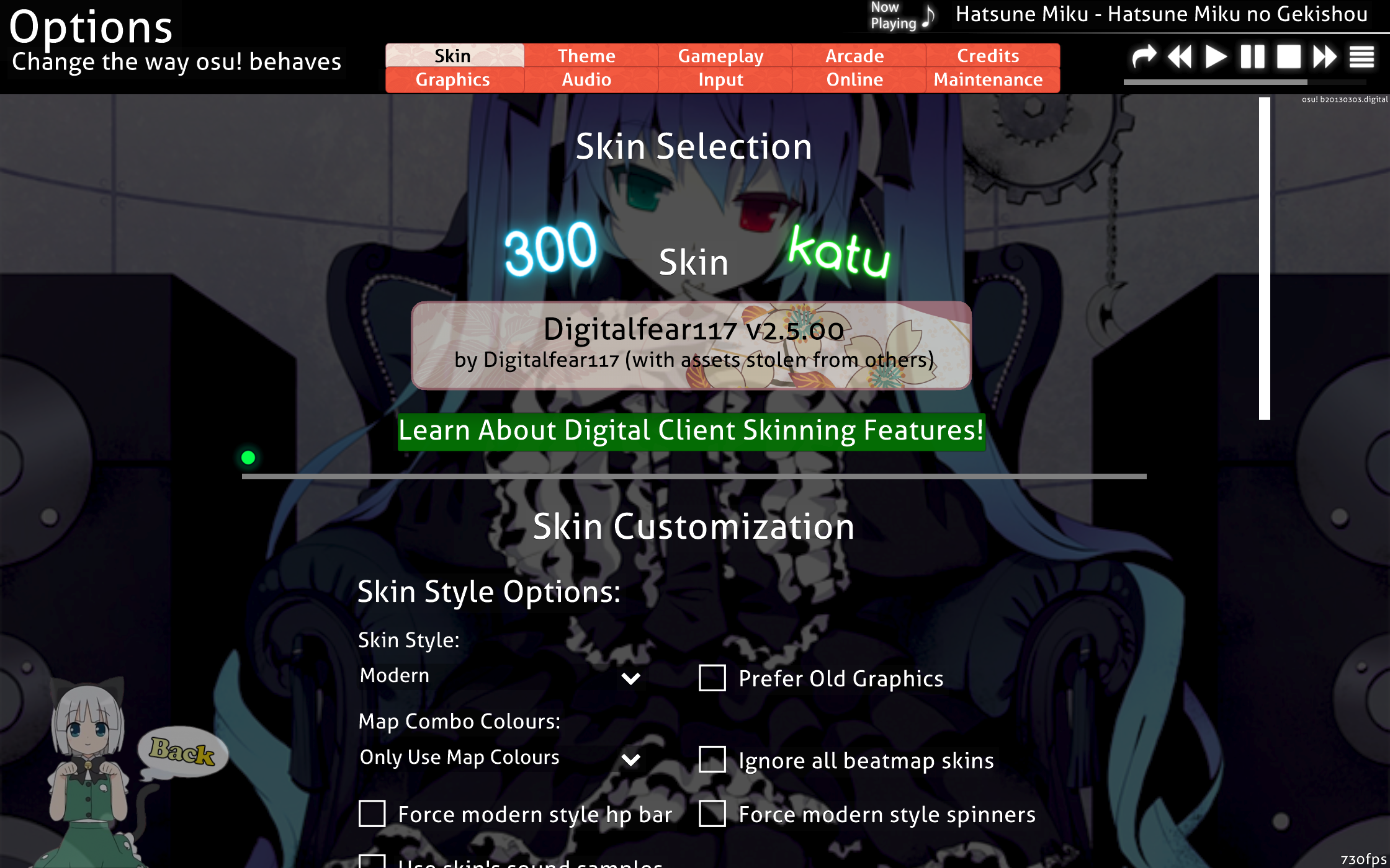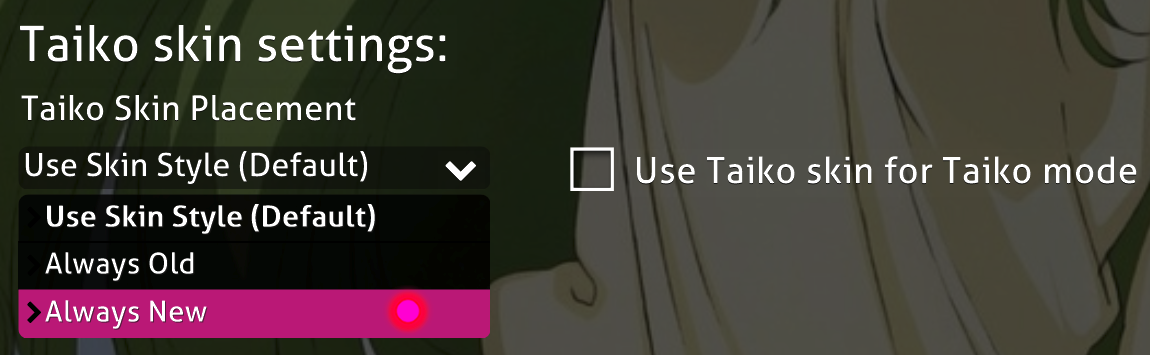 Objects in your skin not lining up in Taiko? Digital Client uses the newest placement positions when using Modern Skin Style, and the original placements when using Classic Skin Style, but many skins are somewhere inbetween fully modern and original, you can now force this to work correctly for your skin!