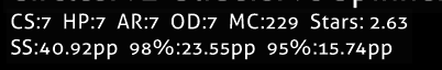 Just like with other modes, you can now see pp estimates for Standard! The calculations for all modes has been updated with rosu, so it should be fully accurate too! In addition, you can now see Max Combo (MC) as well! The pp estimator form is not yet updated.