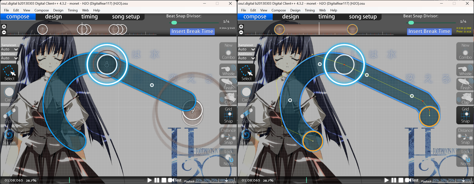 This New Perfect Curve Converter is now essentially 100% accurate. It places more pleasing lines and looks identical to the original Perfect Curve slider, it's incredible! The hard work was done by Marvin who wrote the math for osu! tools, and Khangaroo who ported the code to Stable. All I did was get Khangaroo's code working in .NET Framework 2.0 and Digital Client xD.