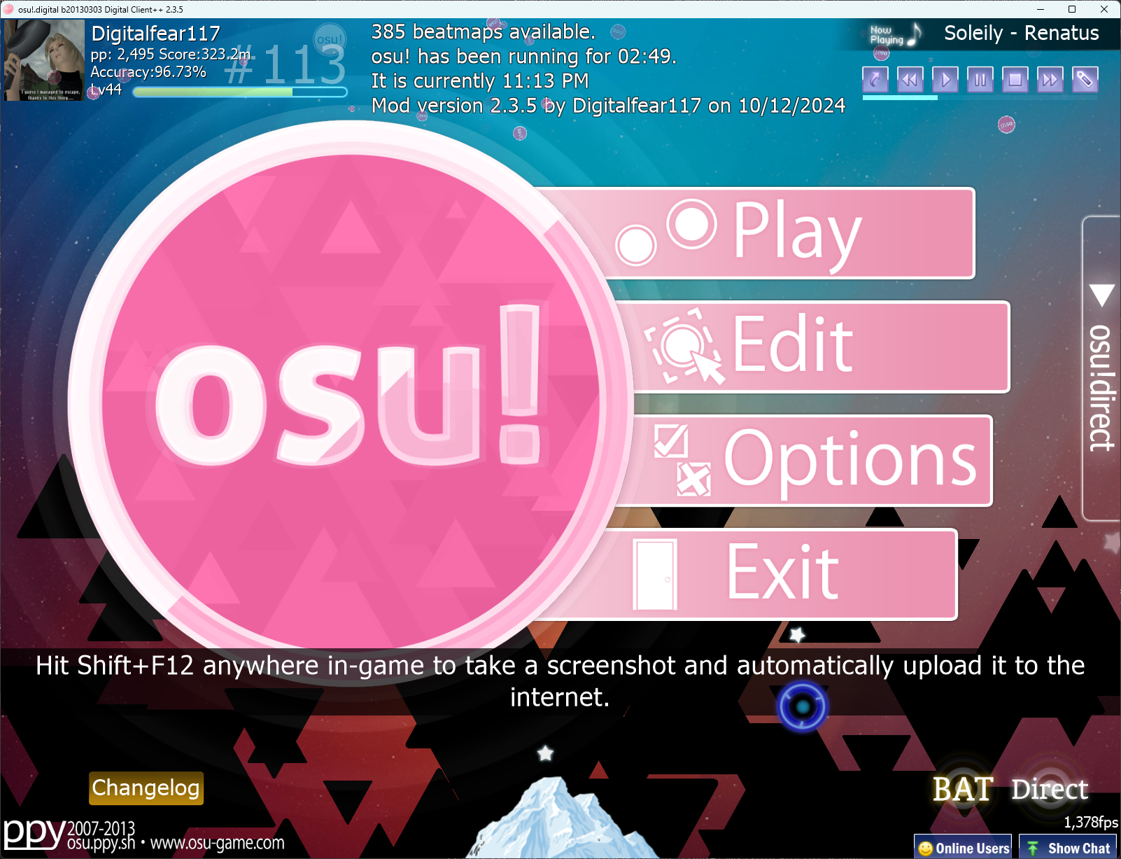 Updated to 2.1.31 fixing the Hardware Submission issues on Windows 7, and changed some of the HitCircle and SliderOsu hit animations to fix their timings!