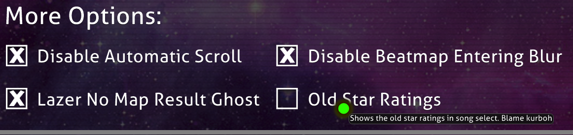 You can now Enable the Old Star Ratings in Song Selection if you are a psycho, this was requested by Kurboh and I hate it.