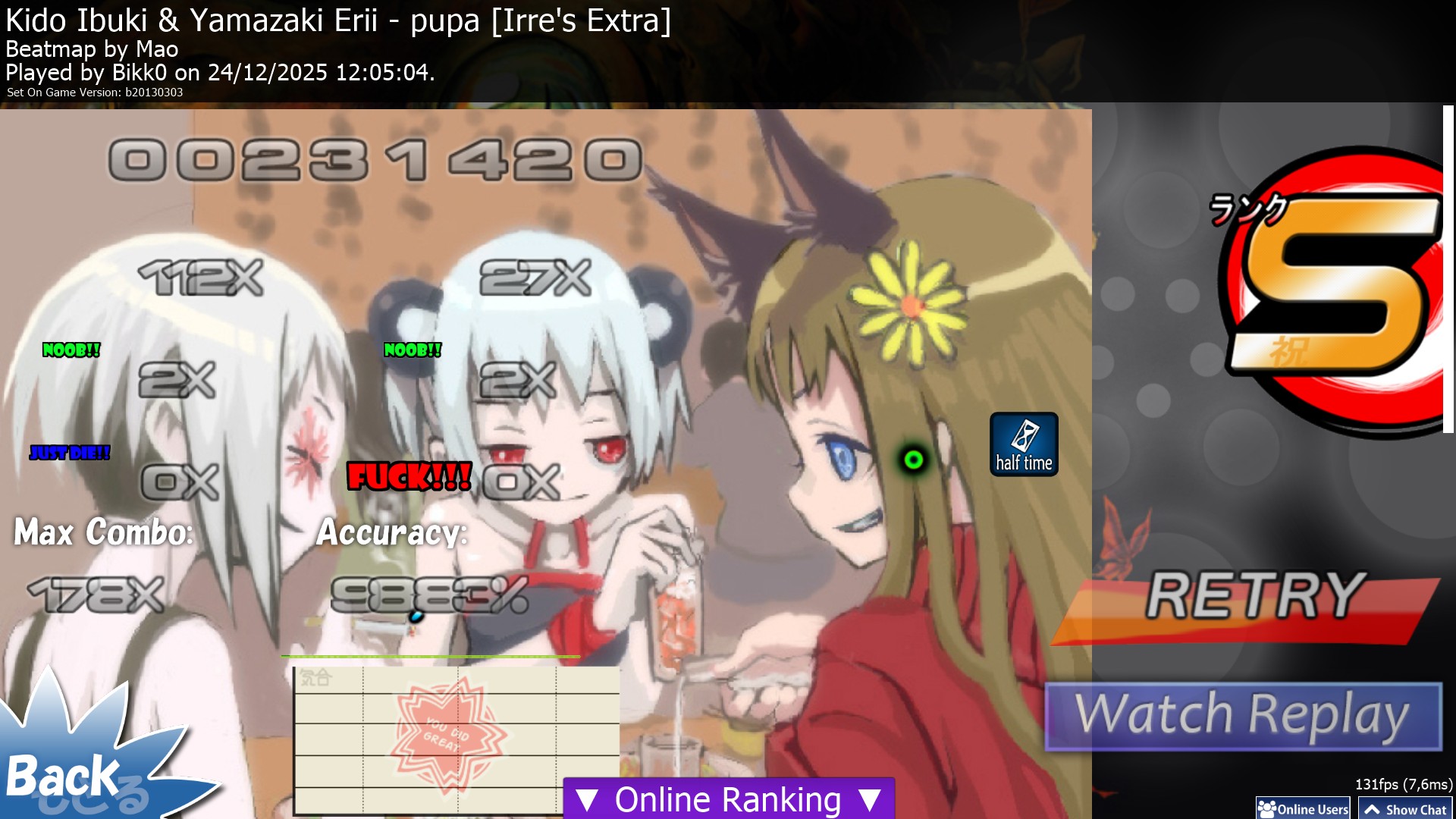 Cheaxr achieved rank #9 on Kido Ibuki & Yamazaki Erii - pupa [Insane] (59pp) |
