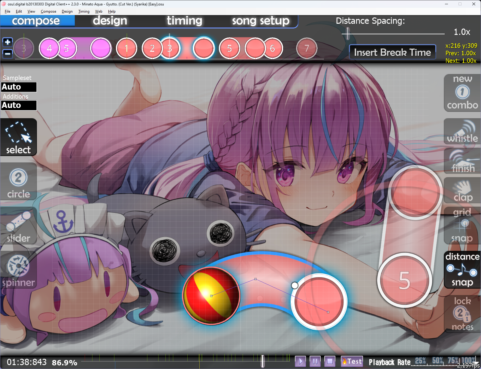 01:38:843 (3) - This slider has a mildly different path. Most the sliders on this map are pretty safe, but this one is probably the worst and it's only slightly different. Either way I would recommend changing the slider to this one: