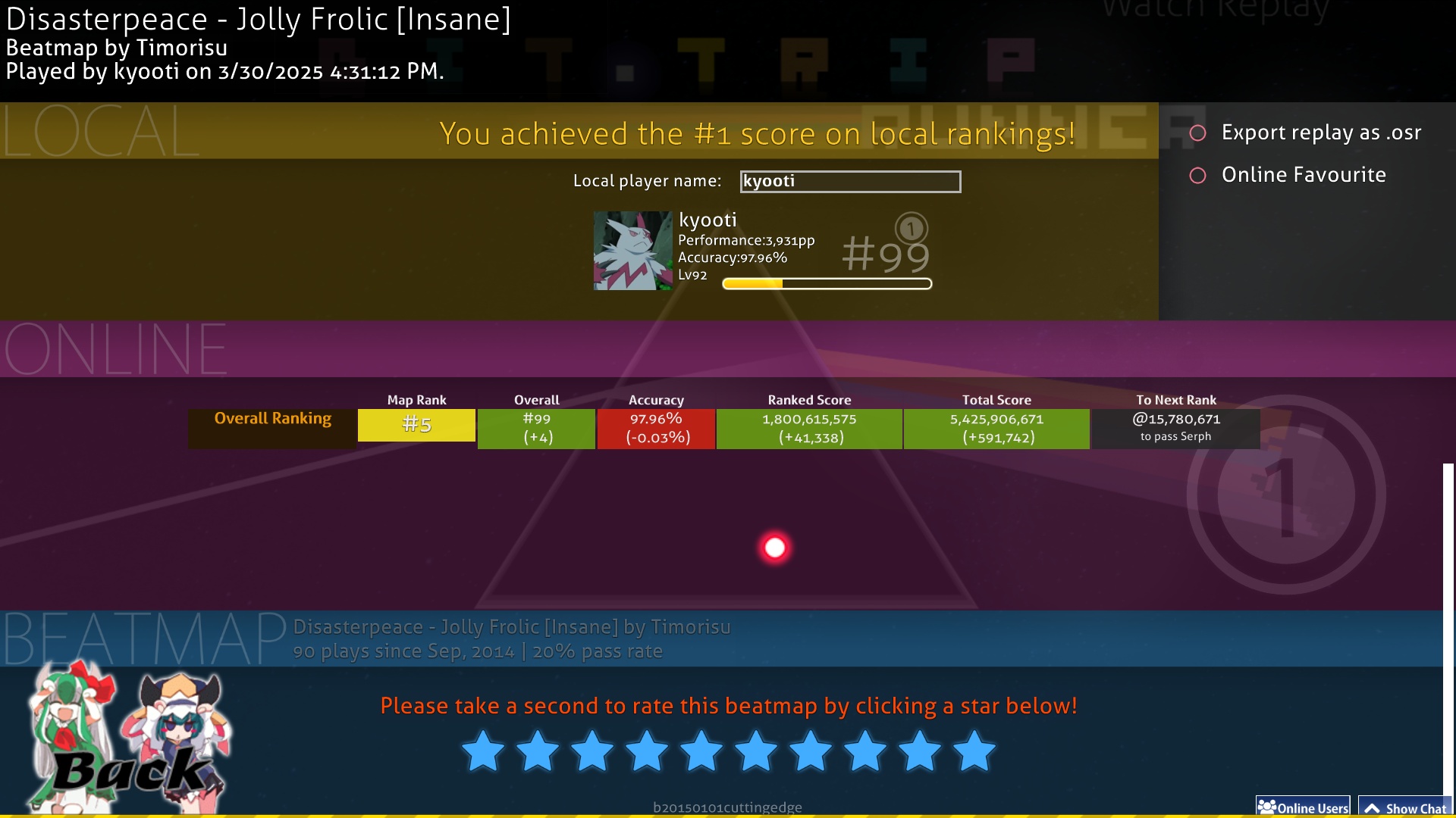 kyooti has risen 1 rank, now placed #131 overall in osu!. |